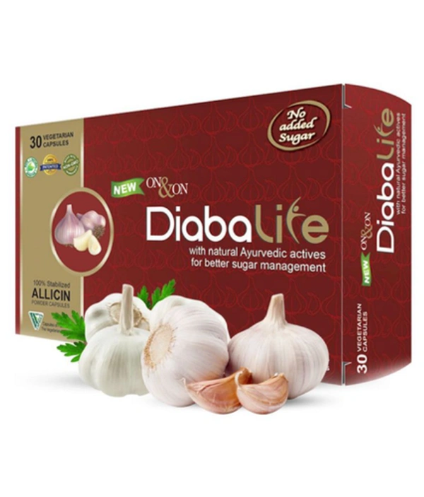 On & On Diabalife 30 VEGETARIAN CAPSULES ★ डायबालाईफ ★ डायबिटीस रहित जिंदगी कि और ... डायबालाइफ ही क्यों ? / डायबालाइफ फॉरम्युलेशन में १०० % स्टेबिलाइज्ड एलिसीन है जो डायबिटिज नियंत्रण में मदद करता है . / HbAIC लेबेल कॉलेस्ट्रॉल व रक्तदाब को नियंत्रित करने में मदद करता है . / सभी घटक हीमोग्लोबिन में संलग्न शर्करा की HbAC स्तर को घटाने में सक्षम है I / शरीर के रोग प्रतिरोध क्षमता को बढाता है . / डायबालाइफ आपके शरीर मे बीमारी कारक बैक्टीरिया का सफाया करता है . / ३-४ महिनो तक इसके सेवन से बेहतर परिणाम देता है । * किनके लिए : - * टाइप -१ / डायबिटिज वाले लोगों के लिए . / जेस्टेस्नल डायबिटिज वाले लोगों के लिए . / उन लोगों के लिए जो डायबिटीज - मुक्त एवं स्वस्थ जीवन जीना चाहते है . ★ टाइप -२ / डायबिटिज वाले लोगों के लिए . / डायबिटिज की संभावना रखने वाले लोगों के लिए .